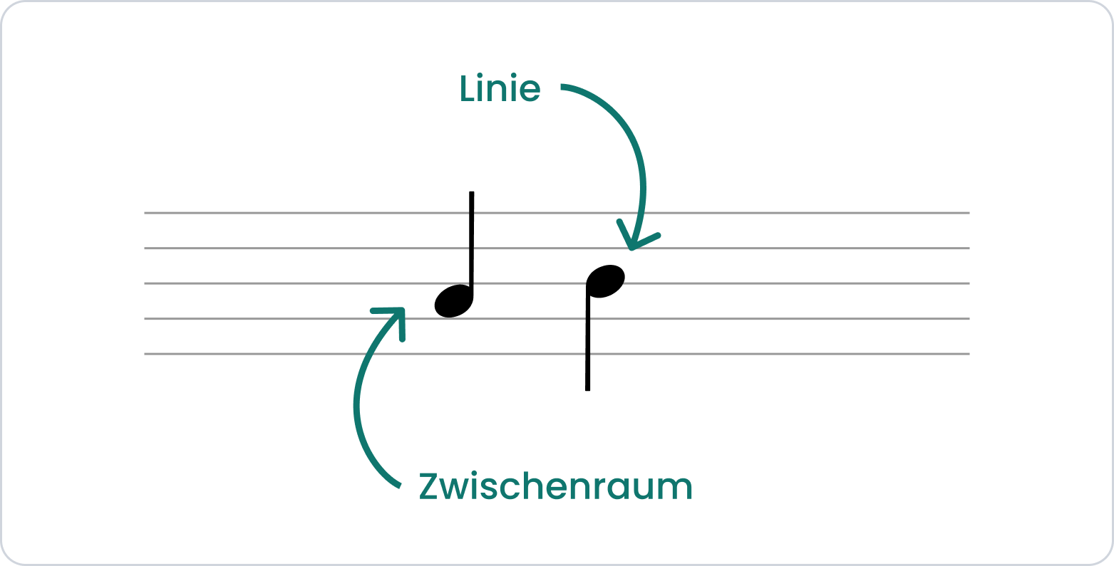 Dabei können Noten (bzw. die sogenannten Notenköpfe) entweder auf einer der fünf Linien oder in einem Linienzwischenraum positioniert werden.