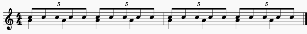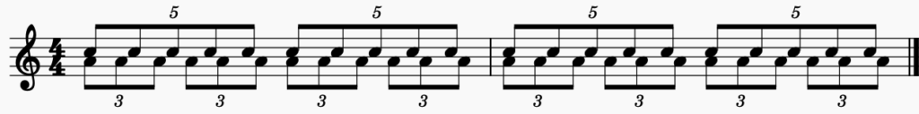 Du hast jetzt das Beispiel zu 3:2 gesehen. Dieser Rhythmus ist relativ eingängig. Es gibt aber unzählige Polyrhythmen. Deshalb schauen wir uns jetzt noch drei weitere Beispiele an. Dabei siehst du, dass es sowohl einfache als auch extrem schwere Polyrhythmen gibt. Je näher die Zahlenverhältnisse beieinander liegen, desto feiner und schwerer wahrnehmbar werden die rhythmischen Verschiebungen. Das kannst du bei dem Beispiel zu 6:5 sehr gut hören.